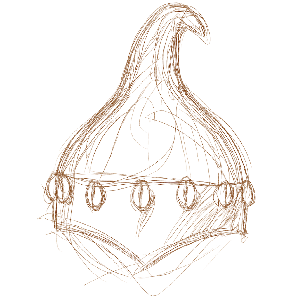 O croqui nasce como registro do itan: linhas rápidas, marcação de eixo e massas aproximadas de cabaça, cobre e madeira. É a etapa de descoberta, em que a obra conversa com a mão e o papel revela possibilidades de ritmo e proporção.