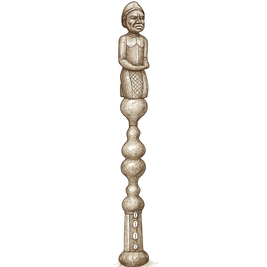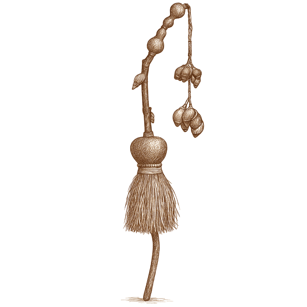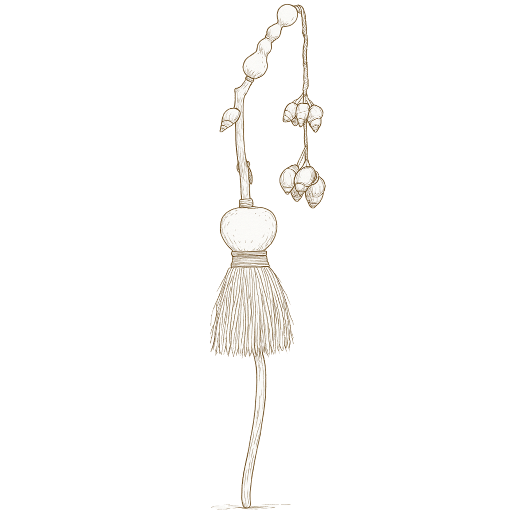 Este conjunto não busca o efeito fácil; ele assume a responsabilidade de ser fundamento tornado forma. A escolha de cada material carrega uma oração: cabaça (vida/ventre/origem), cobre (passagem/vigilância), búzio (destino/escuta), sisal cru (terra/neutralidade), madeira nobre (permanência/ancestralidade). Ao acolher esta obra, você passa a conviver com um eixo simbólico que respeita rito, tempo e memória — e que sustenta presença silenciosa no cotidiano.