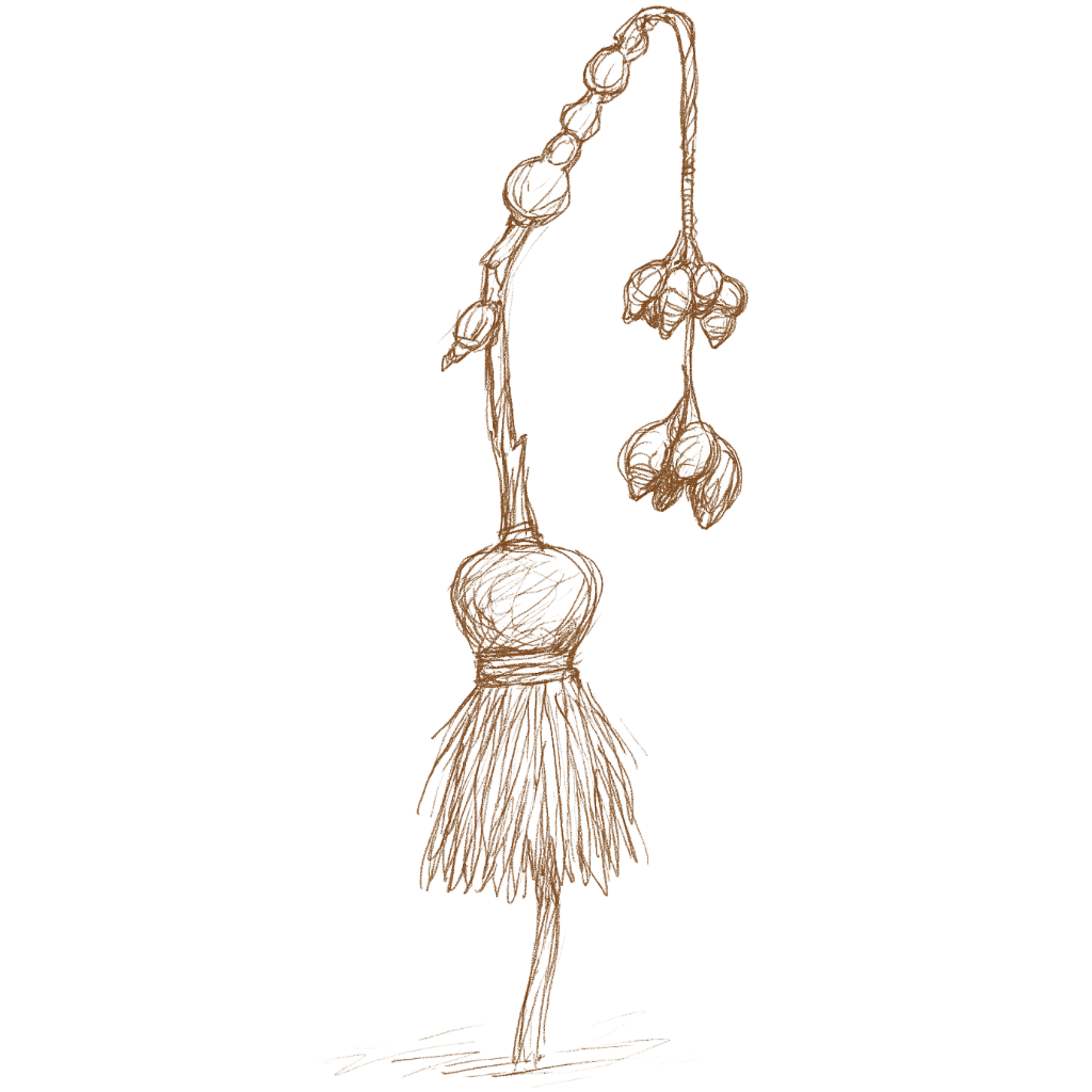 A cabaça foi eleita matriz por unir origem e arquitetura: pode sustentar, pode se fragmentar e pode encaixar. O cobre, o búzio, a madeira e o sisal não foram escolhidos pelo efeito, mas pelo que dizem: passagem e vigilância, destino e escuta, permanência e ancestralidade, ligação com a terra.